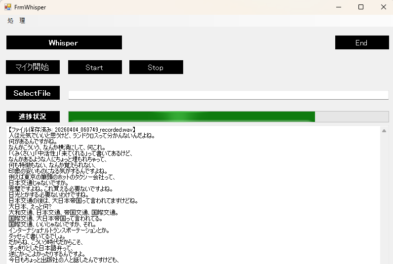「Whisper」を使用して文字起こし Whisper.net (ローカルライブラリ) を使用する: OpenAIのモデルをローカル環境で動かす。無料、高プライバシー、GPU(CUDA)推奨。 1.1 ... - 音声でアプリ起動・終了
