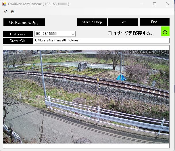 監視カメラの映像を画像で連続保存する 実行画面 タイマー機能を利用して連続保存します。 Form1 Form1.cs - PIP形式 メディアプレーヤー