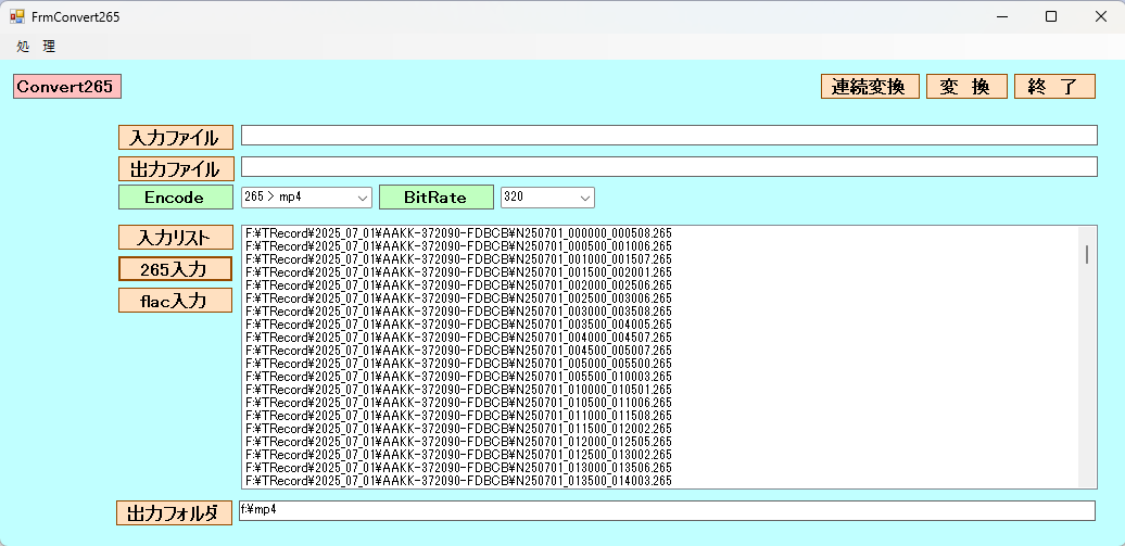 監視カメラの265映像をエンコード ffmpeg 実行画面 ffmpegを使用して、265ファイル(取り扱いが面倒)をmp4へエンコード。FLACをmp3へエンコード。 FFmpegは強力な動画変換ツ ... - antigravityでmusic playerを作成