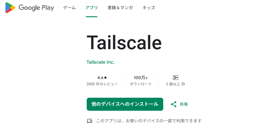 このIPアドレスはtailscaleの管理コンソール画面に表示されているデバイスのIPアドレス情報と同じものです。