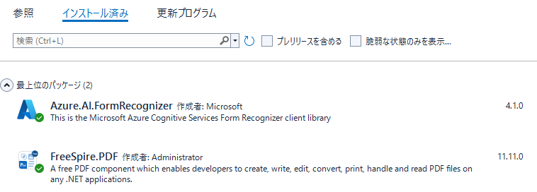 「 Azure.AI.FormRecognizer 」 「 FreeSpire.PDF 」 を導入。