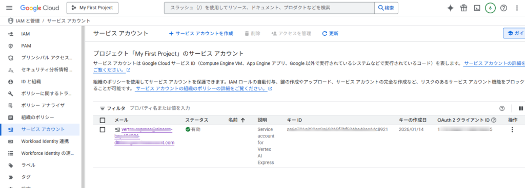 • サービスアカウントを作成し、認証キー(JSONファイル)をダウンロードします。