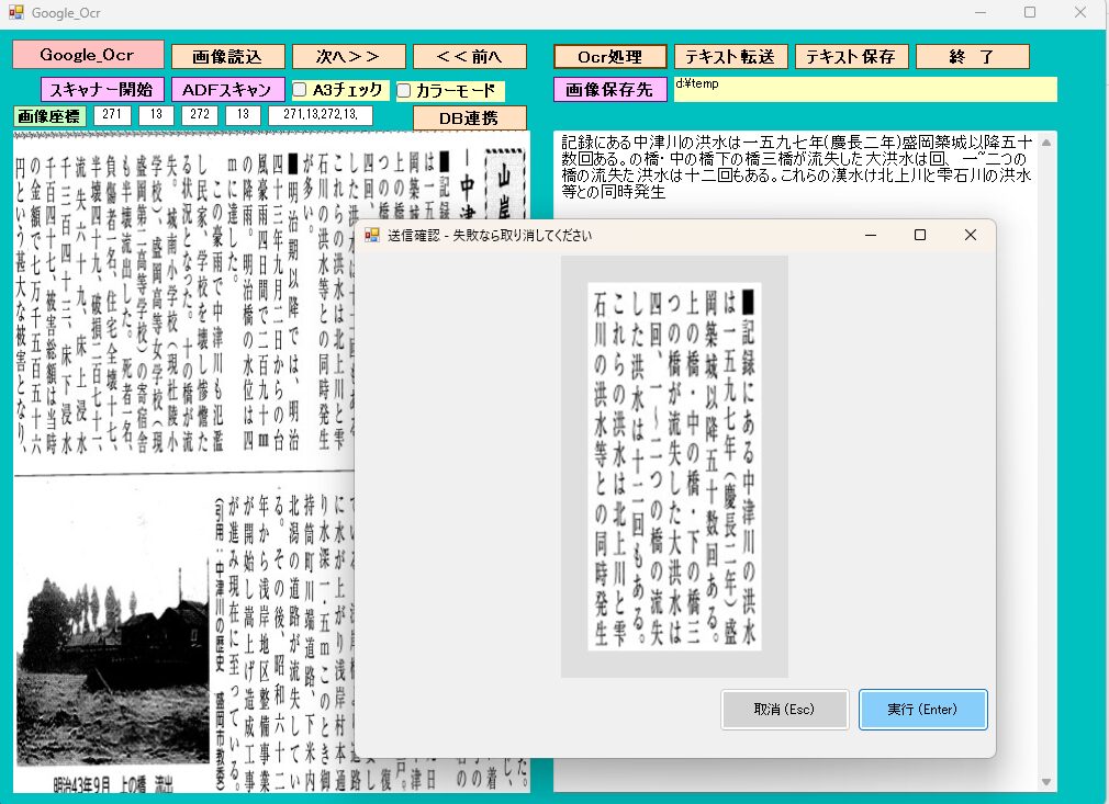 画像をマウスで左上と右下を指定することで、部分的にOCR処理できます。