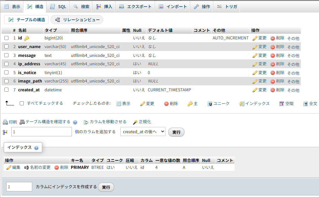 HOME > wordpress > wordpress WORDPRESS MySqlの操作 2026年2月26日 WORDPRESS MySqlの操作 PhpMyAdmin wp_community_chat の作成 Post Share Pocket Hatena Pinterest LINE URLコピー -wordpress